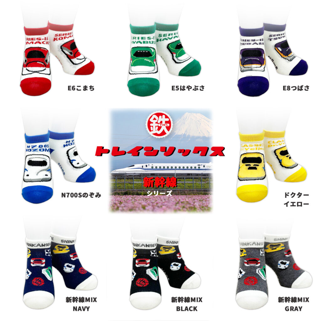 N700Sのぞみ、ドクターイエロー、E5はやぶさ、E6こまち、E8つばさ、MIX-ネイビー、MIX-ブラック、MIX-グレー、全8種