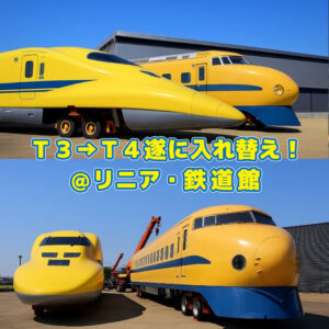 コレに伴い、これまで展示されていた「T3編成」(JR西日本所属)は返却のため搬出。