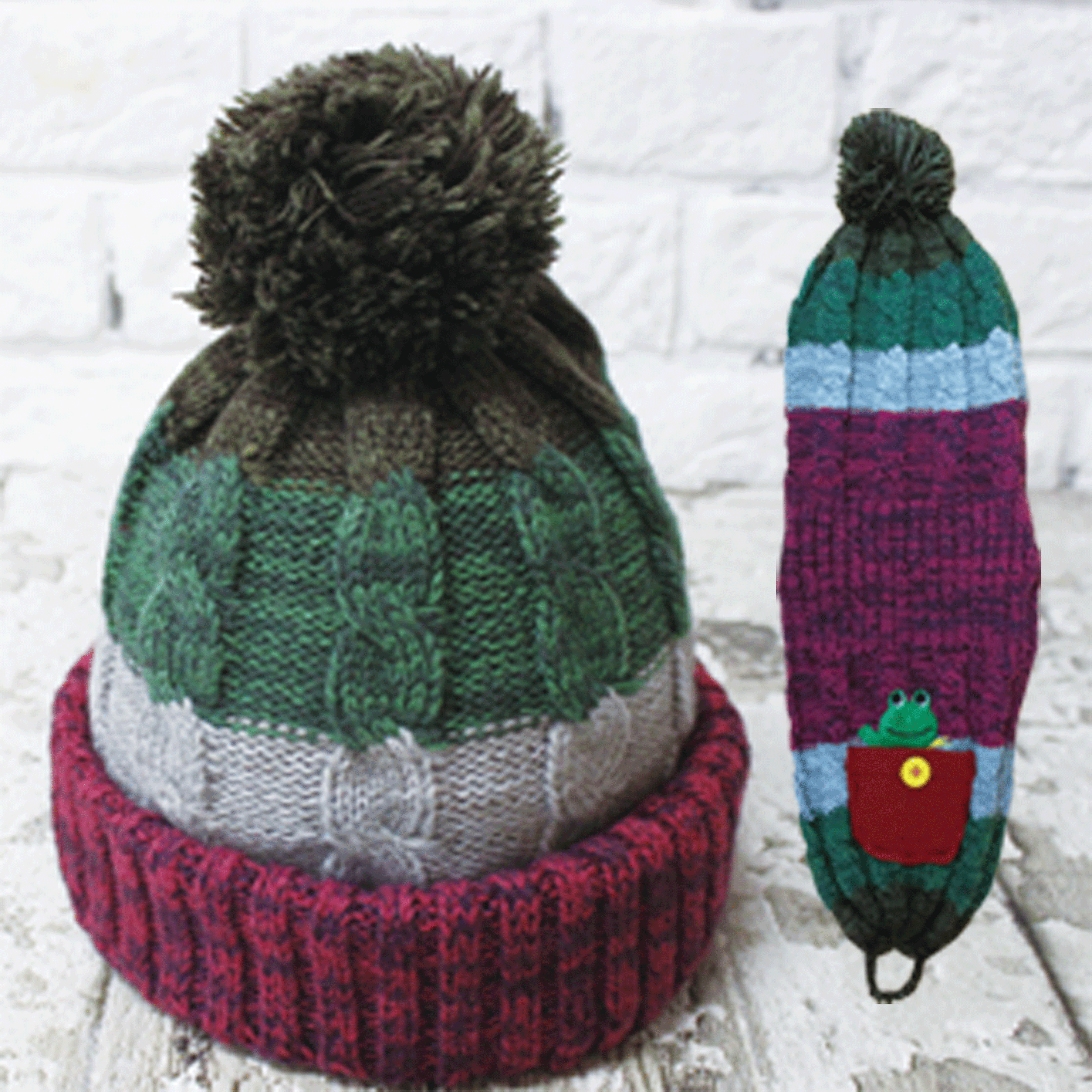 ニット帽子にも、中から引き出せばかわいいマフラーにもなります。