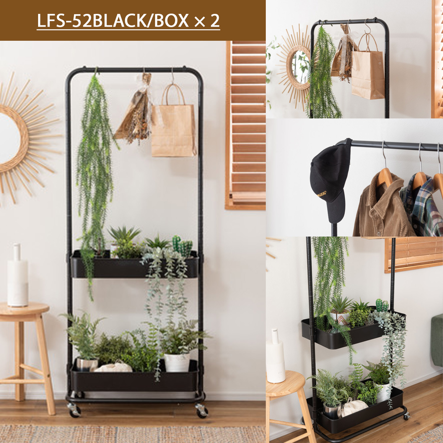 中間ハンガーやBOXの高さを変更出来るので、使いやすい形に変えて使用可能