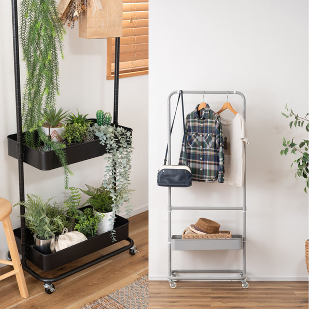 シンプルデザインで場所を選ばないハンガーワゴン