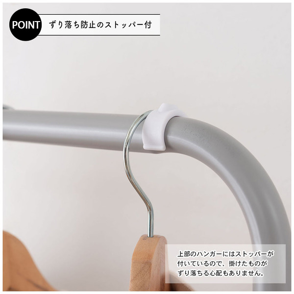 上部のハンガーにはずり落ち防止のストッパー付き