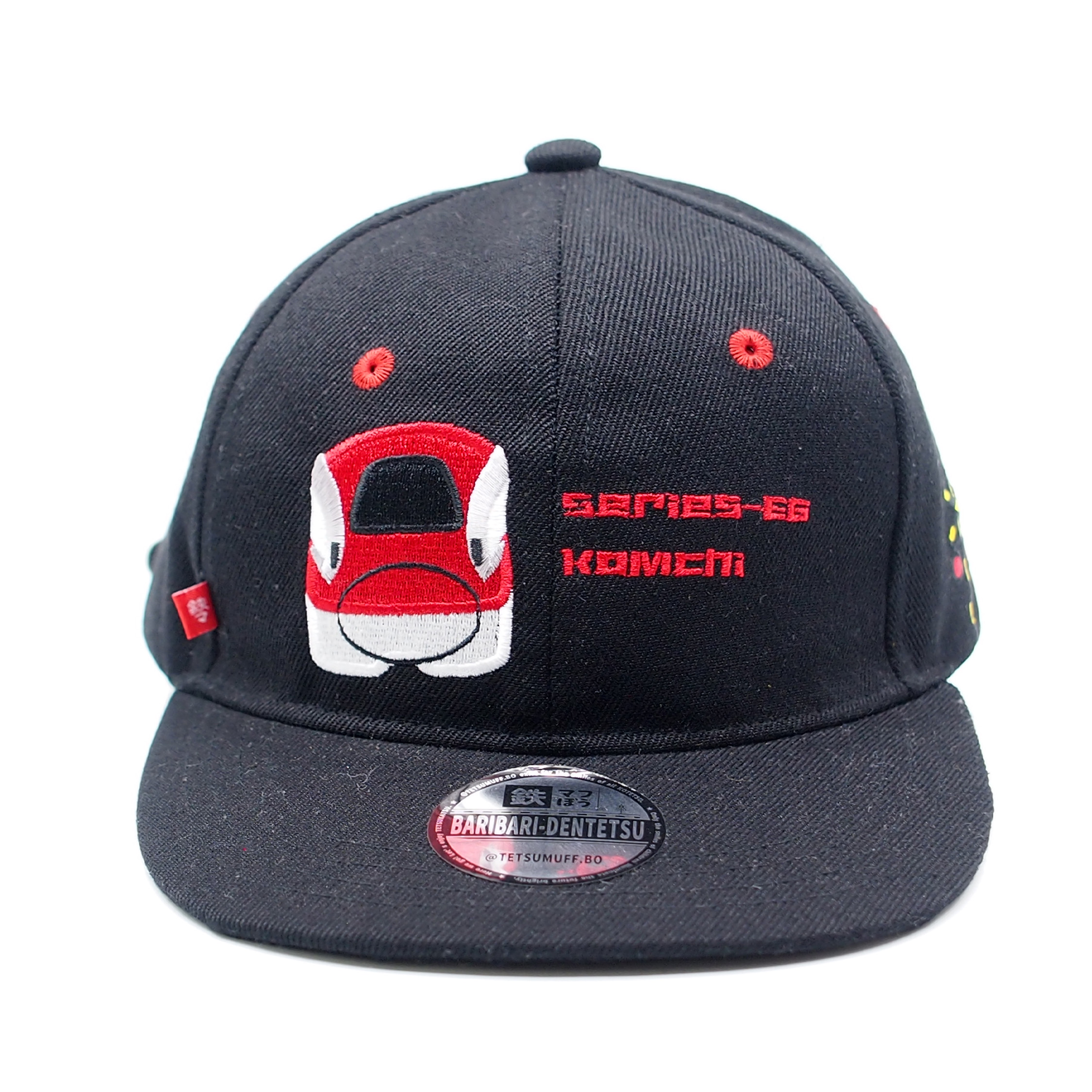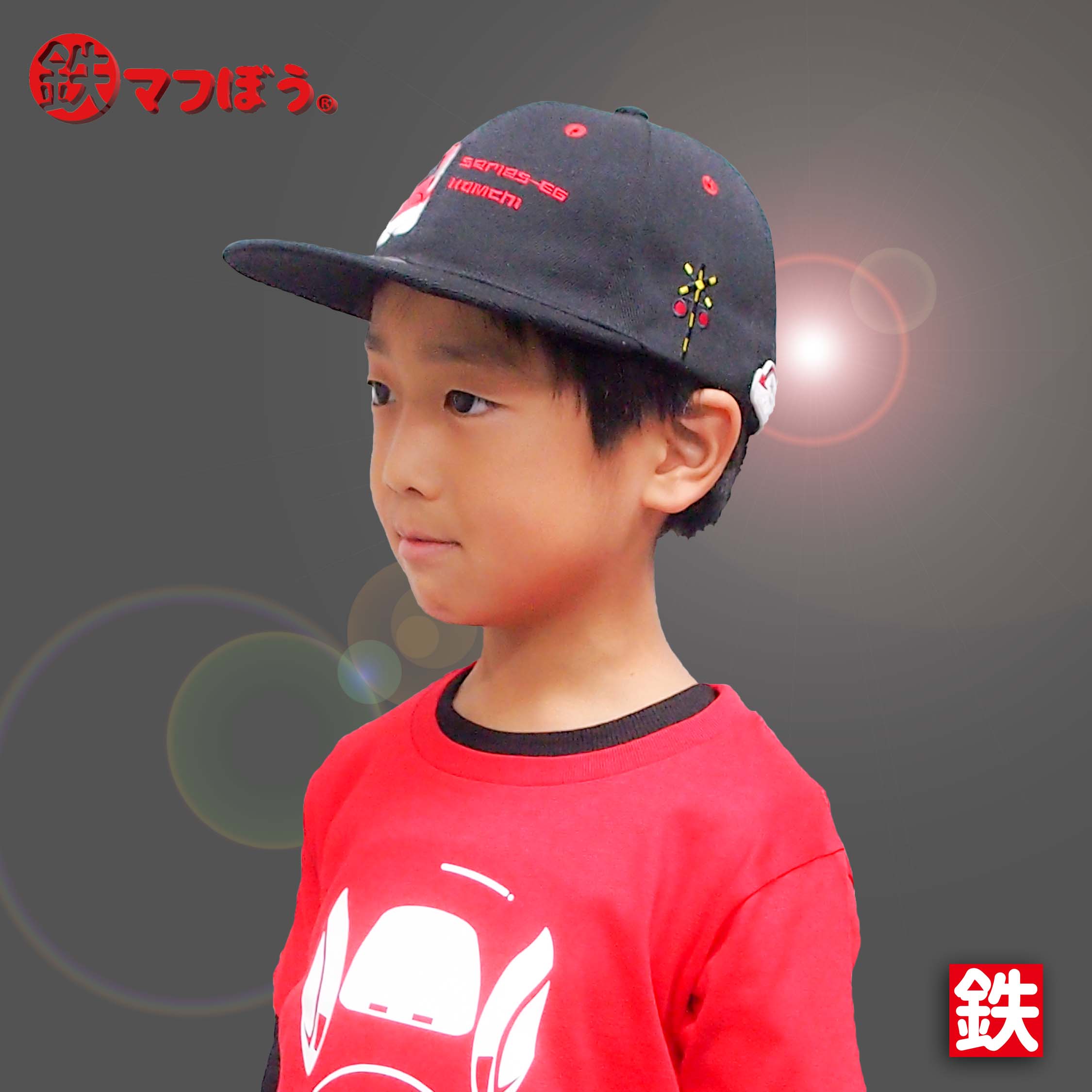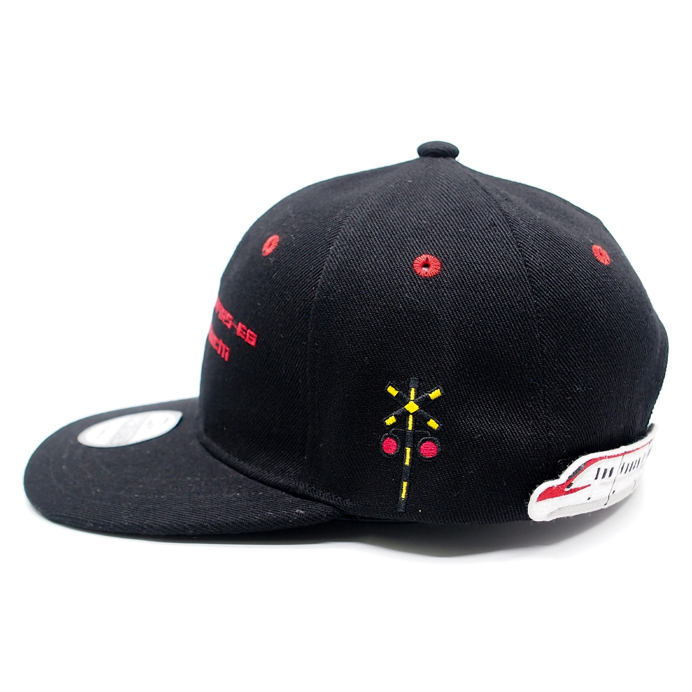 左側に配置した「踏切」刺繍、後頭部に追加した「車輌名」刺繍、内側の鉄マフぼうオリジナルテープなど、随所に新しさを感じて頂けると思います。