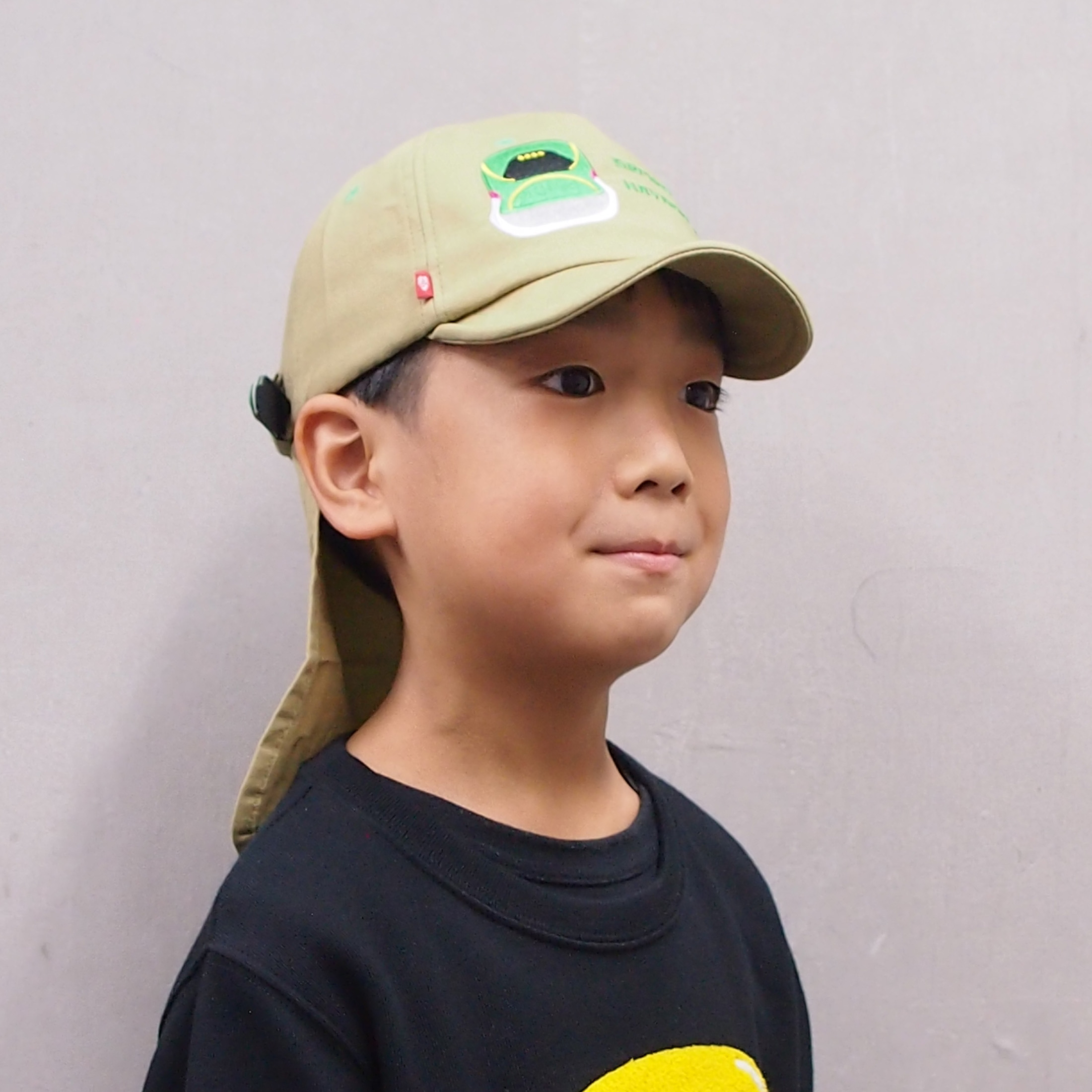 - 柔らかいツバ:一般的なCAP帽子とは違い、敢えて硬いツバ芯を使っていません。その理由は、まだまだ柔らかい子どもたちの頭には硬い芯地がこめかみを圧迫し頭痛を引き起こす場合があるためです。そこで硬い芯地は使用せず、ツバ先に特殊な樹脂製ワイヤーを入れ、お子さんの顔立ちに合ったシルエットを作れるようにしました。いろんなスタイルでお楽しみ下さい。