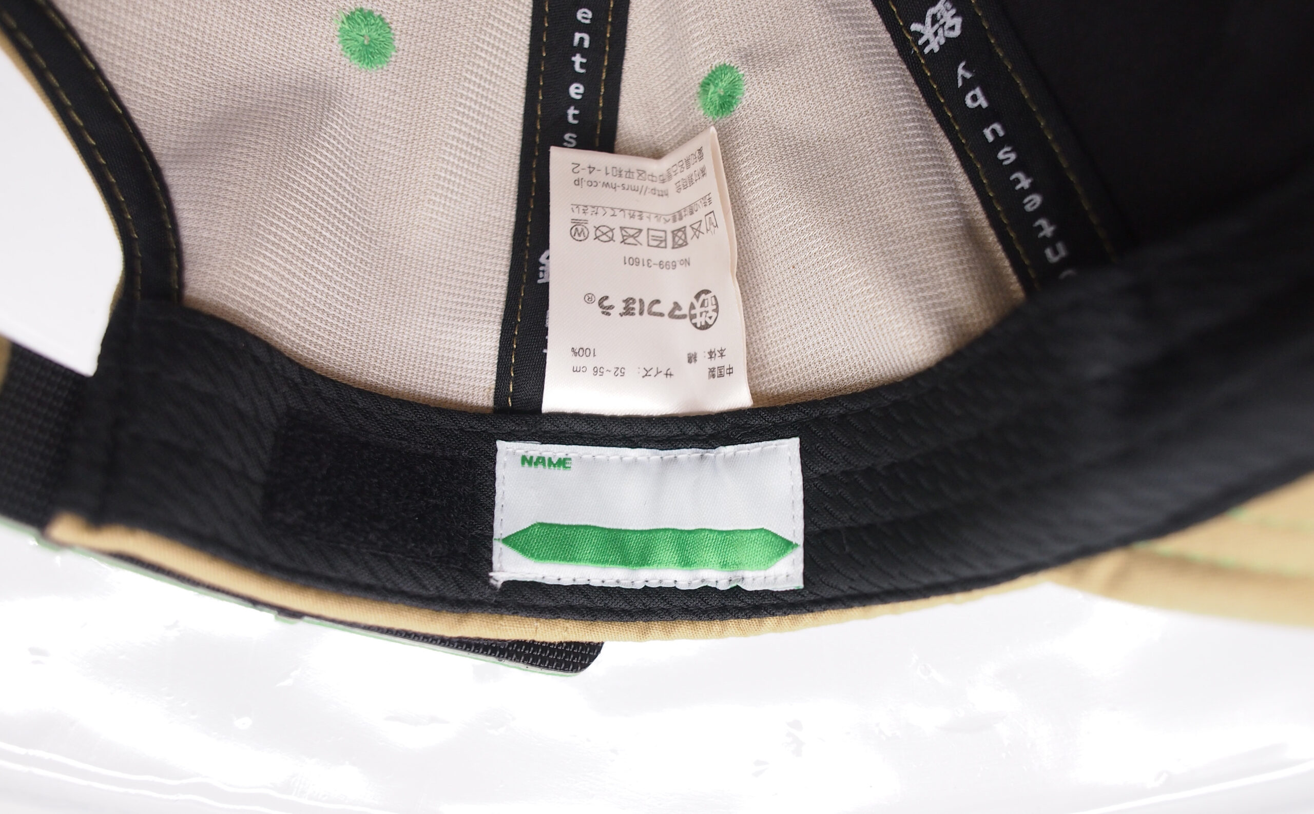 - ネームタグ:帽子内側に駅名標風デザインのネームタグを用意しました。大勢が集まる場所などでの紛失を防ぎます。