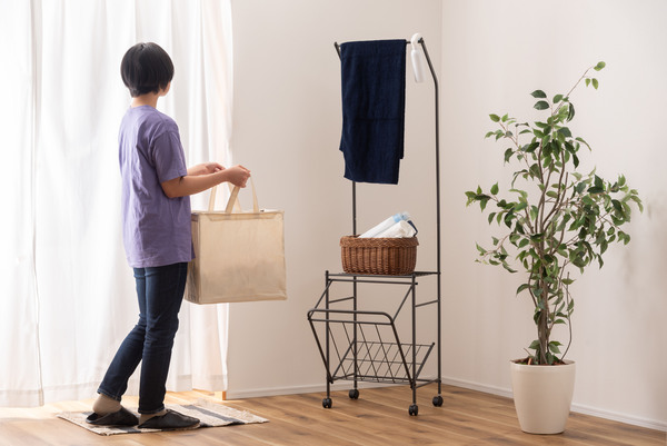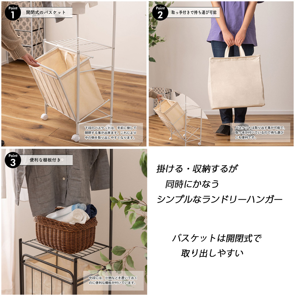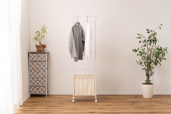 - 掛ける・収納するが同時にかなうシンプルなランドリーハンガー