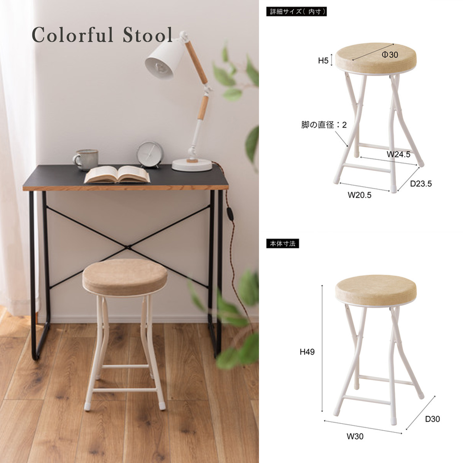 座面サイズは30cmと使いやすいサイズ。来客用に、作業用に、ちょっと休憩用に便利なサイズ。