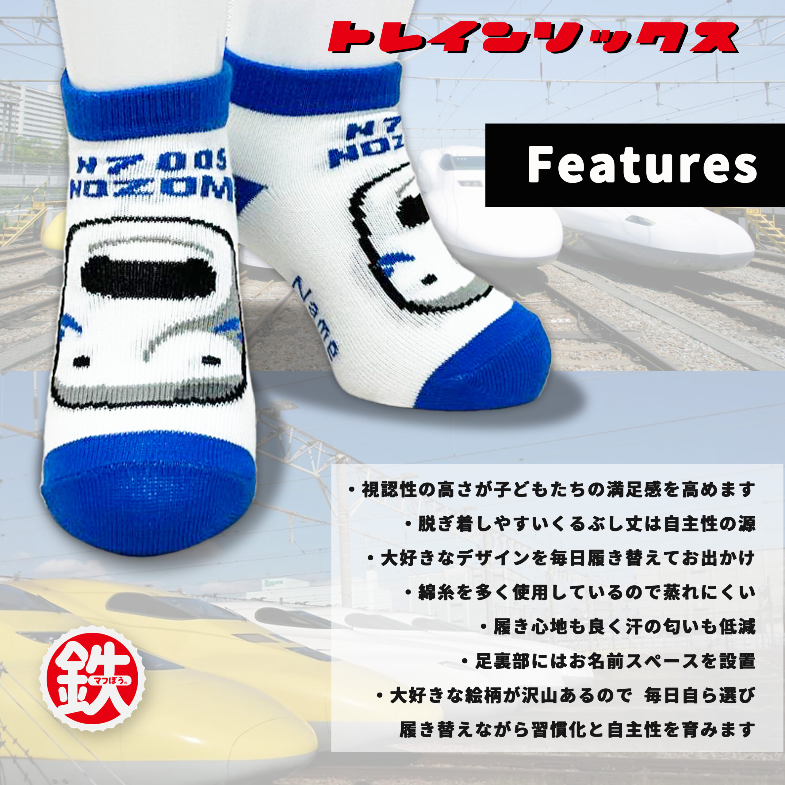 息子くんは、得意気に鉄道のくつ下を履いて行きましたが、そのくつ下は、くつ下全体が鉄道車両モチーフのやつ。